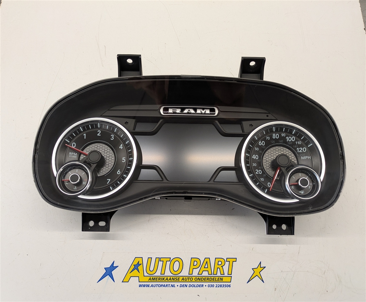 Een gebruikt instrumentenpaneel(mph)van een Dodge Ram 1500 pickup 2020.