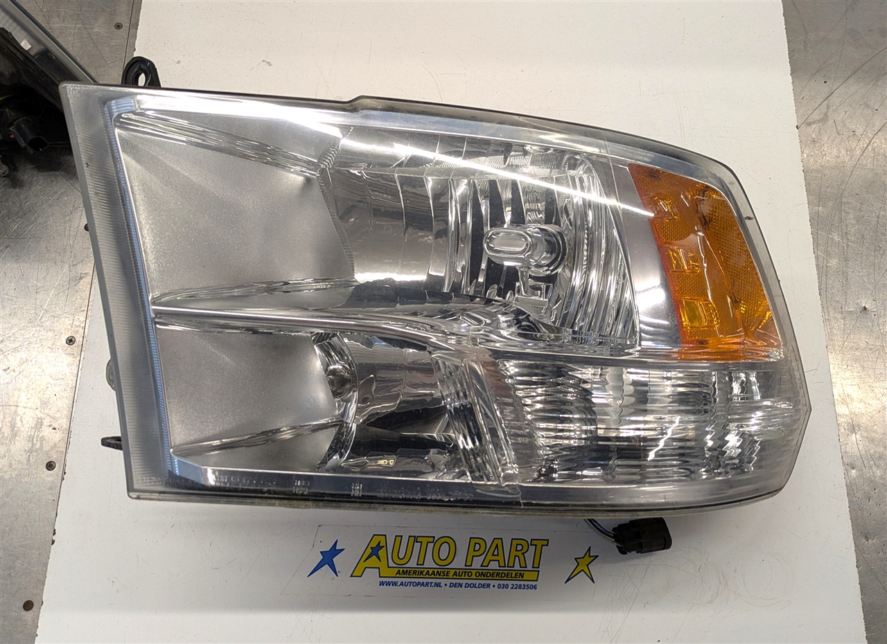 Een gebruikte linker of rechter koplamp (met "quad"lamp) voor een Dodge Ram 1500 2009-2018.