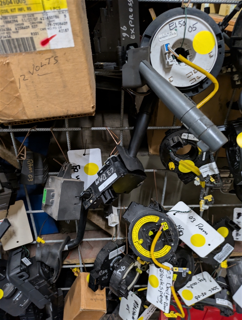 Een gebruikte originele richtingaanwijzer/wisser schakelaar van een Dodge Ram pickup 2002-2008.