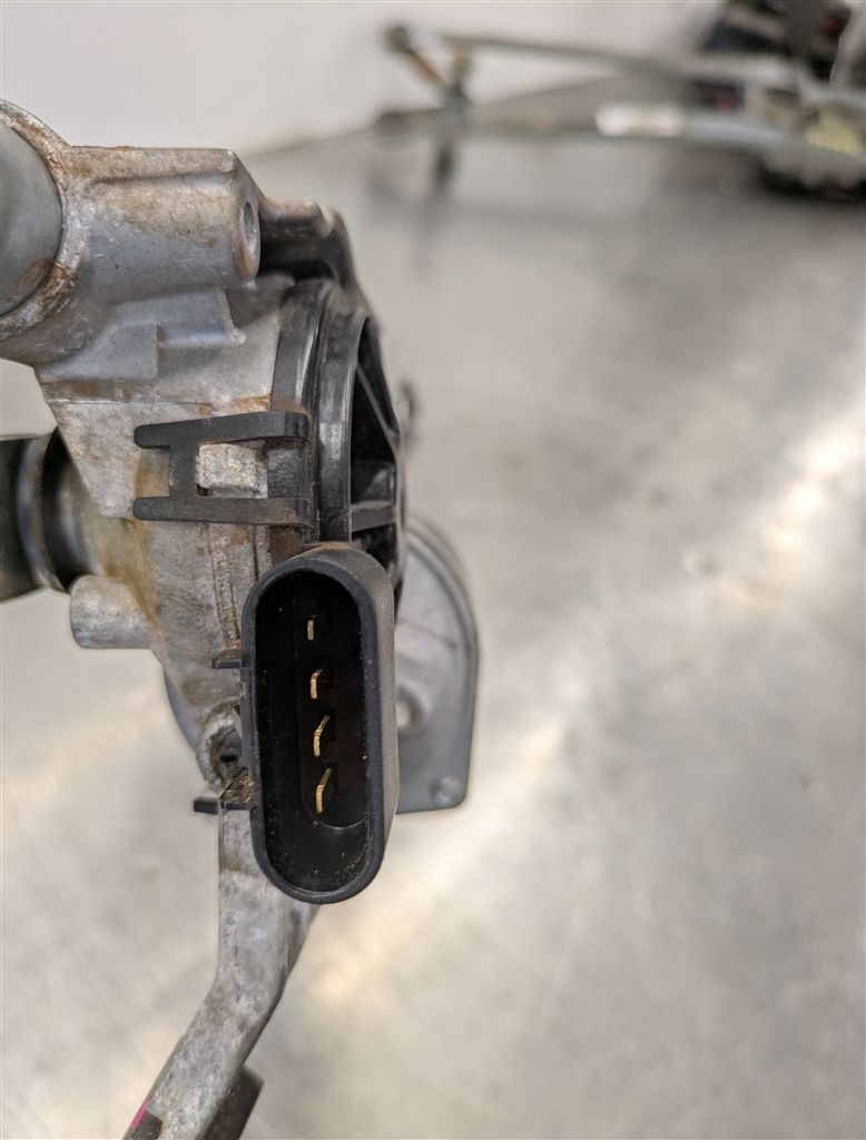 Een gebruikt ruitenwissermechaniek met ruitenwissermotor voor een Dodge Ram 1500 pickup 2003-2008.