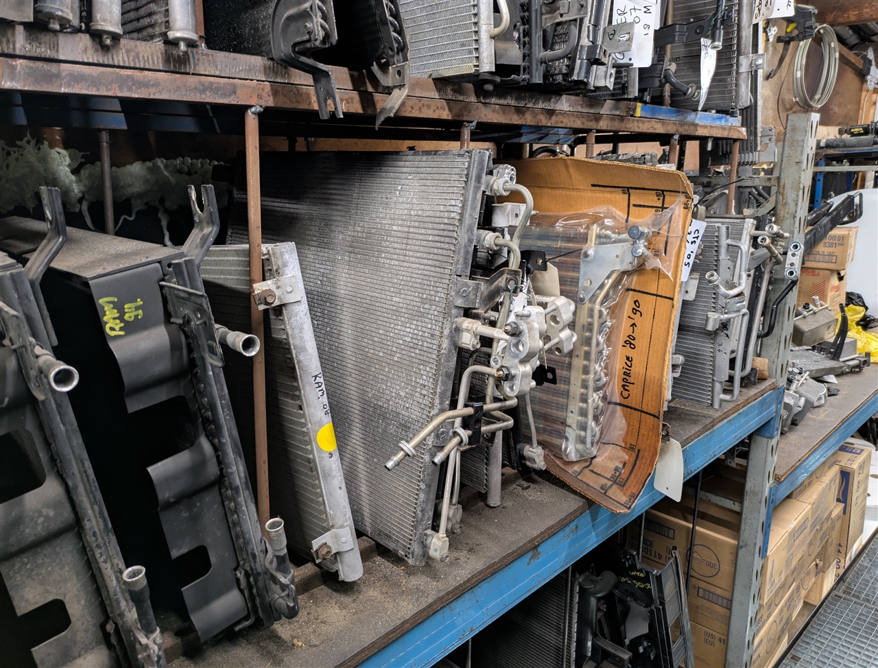 Een gebruikte originele aircocondensor voor een Dodge Ram pickup 2002-2008.