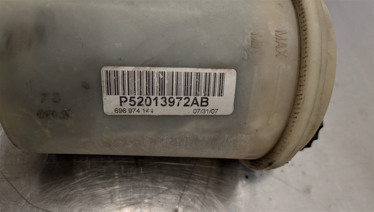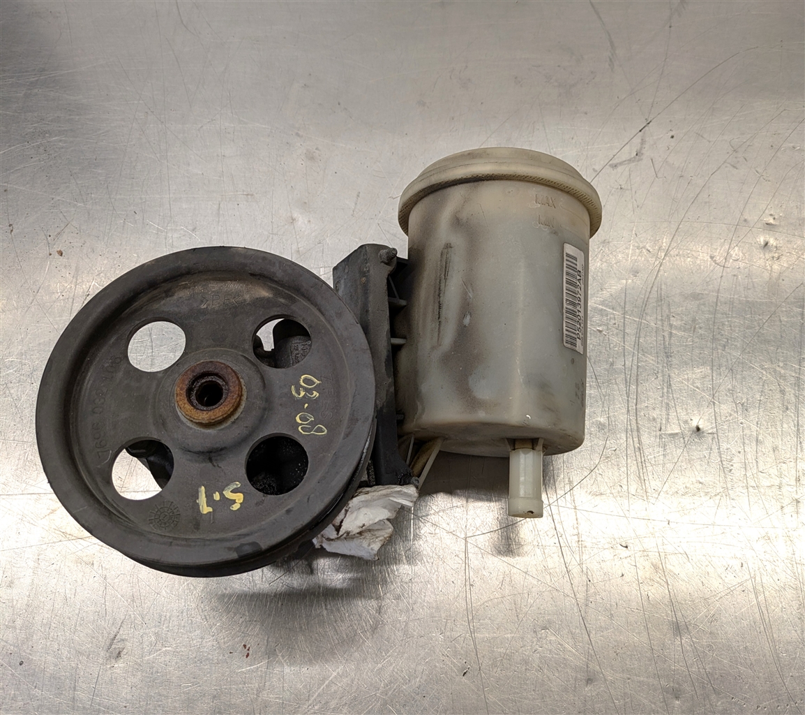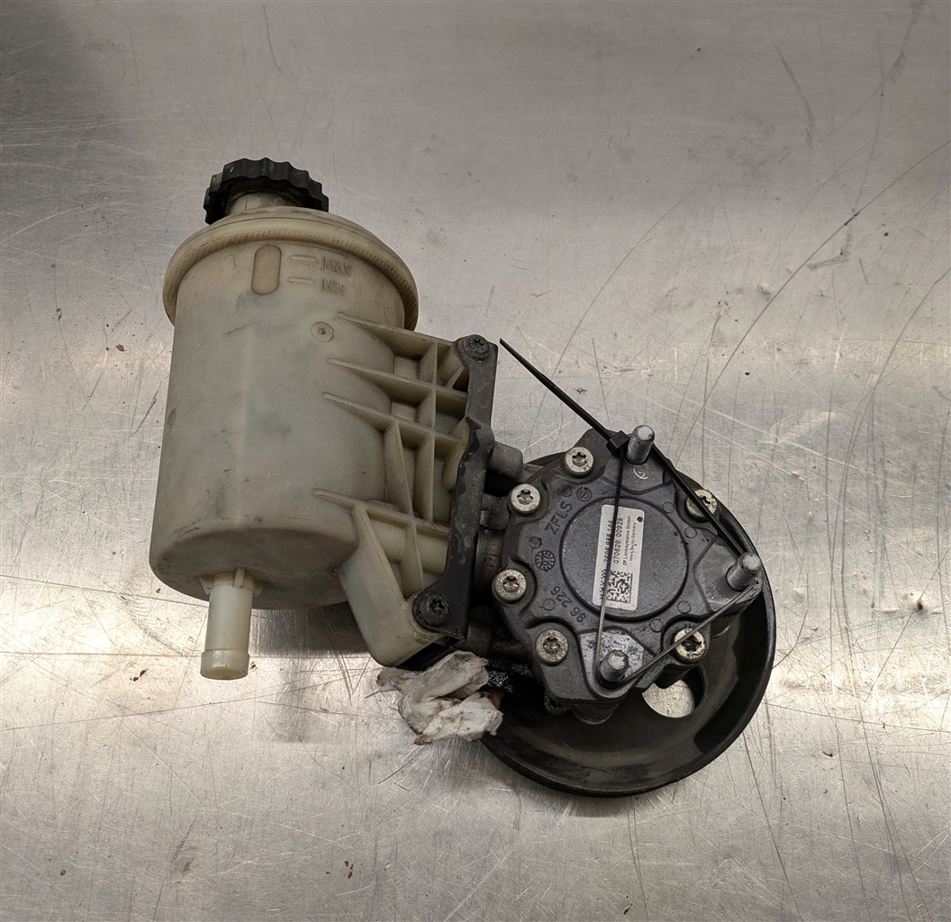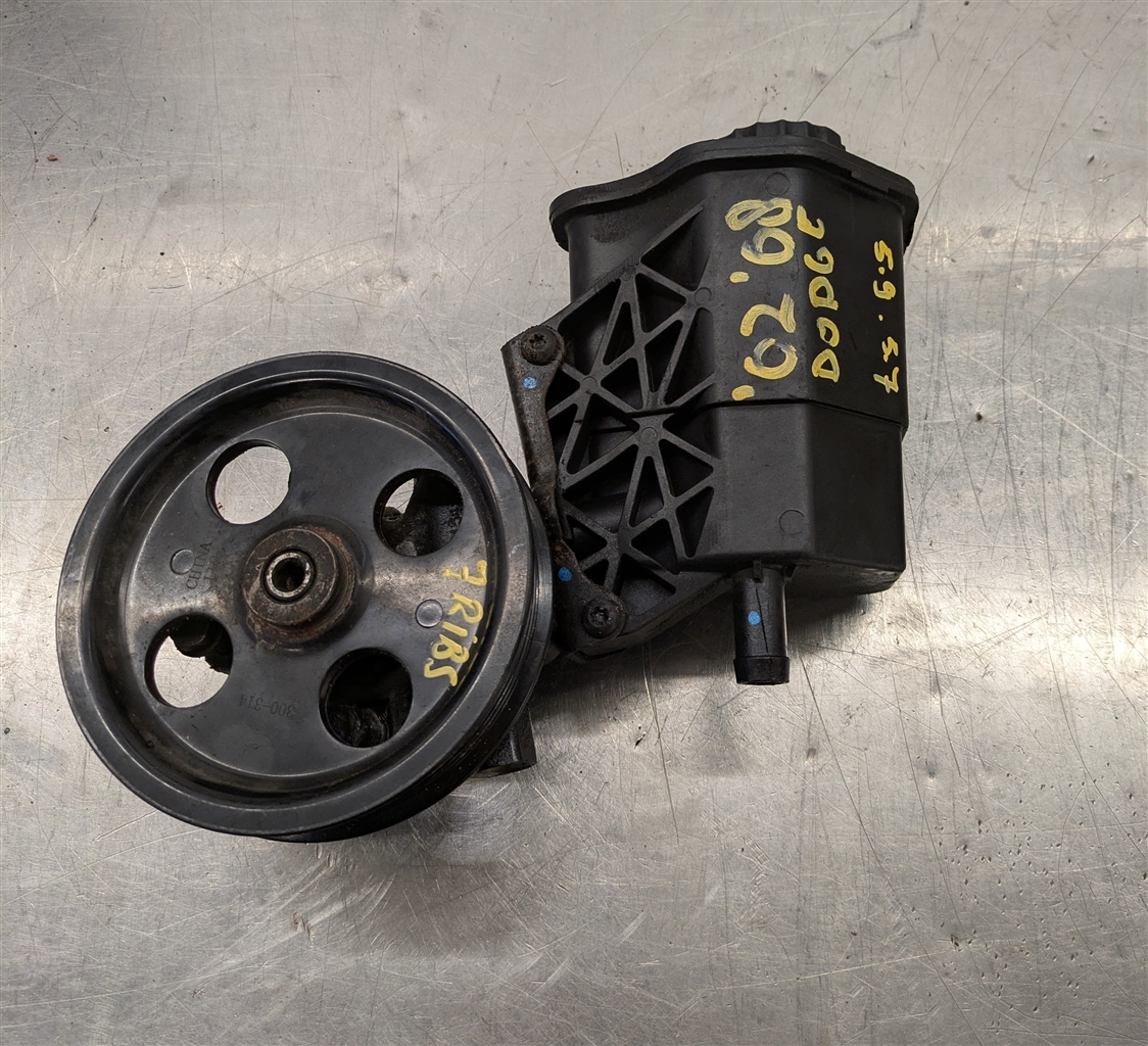 Een gebruikte stuurbekrachtigingspomp met reservoir en pully voor een Dodge Ram pickup 5.9, 5.7 2002-2008.