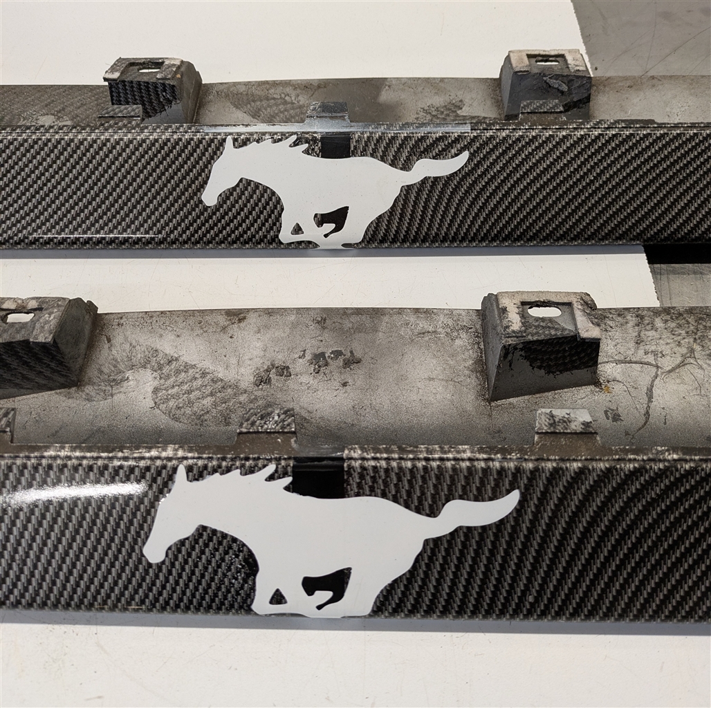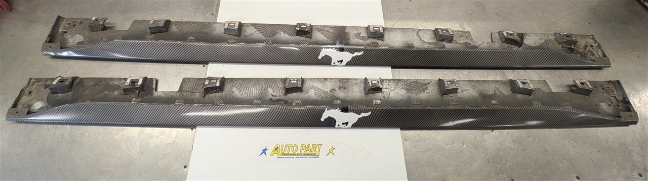 Een gebruikte set (linker en rechter) "carbon fiber look" dorpellijst/side skirt voor een Ford Mustang 2015-2023.
