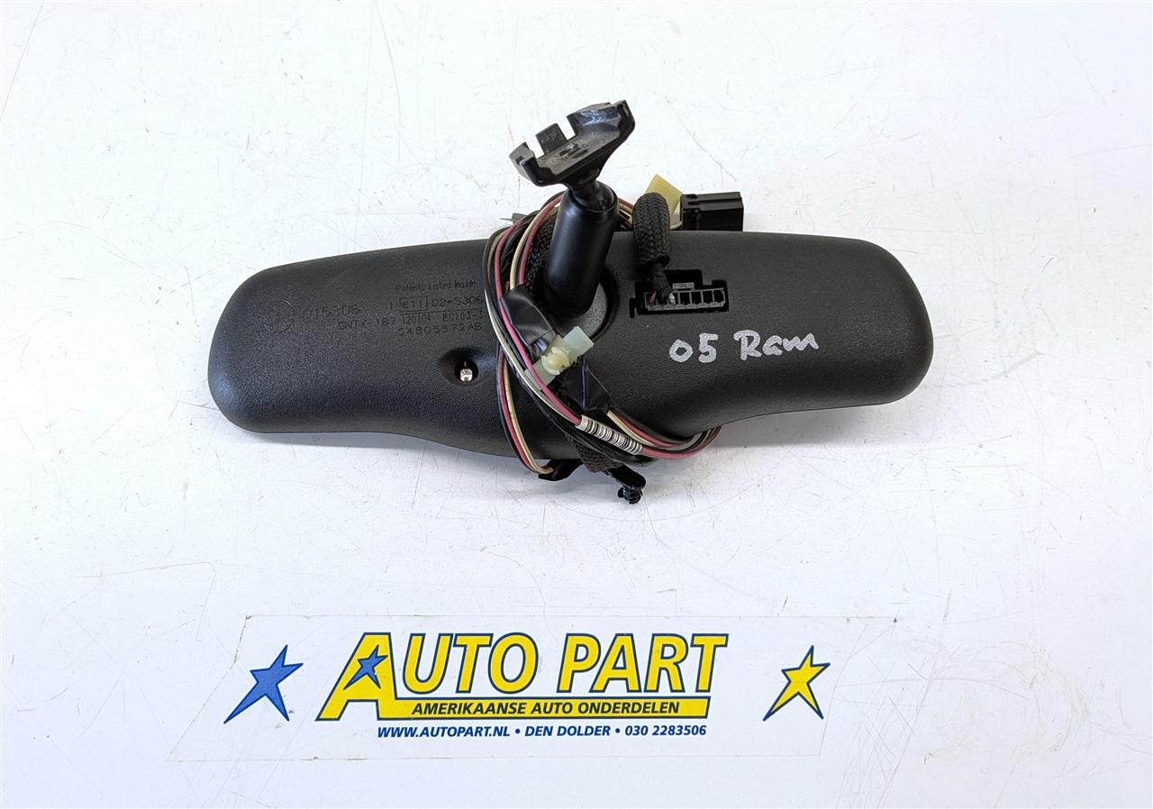 Een gebruikte originele automatische dimmende binnenspiegel voor een Dodge Ram 1500 pickup 2002-2012.