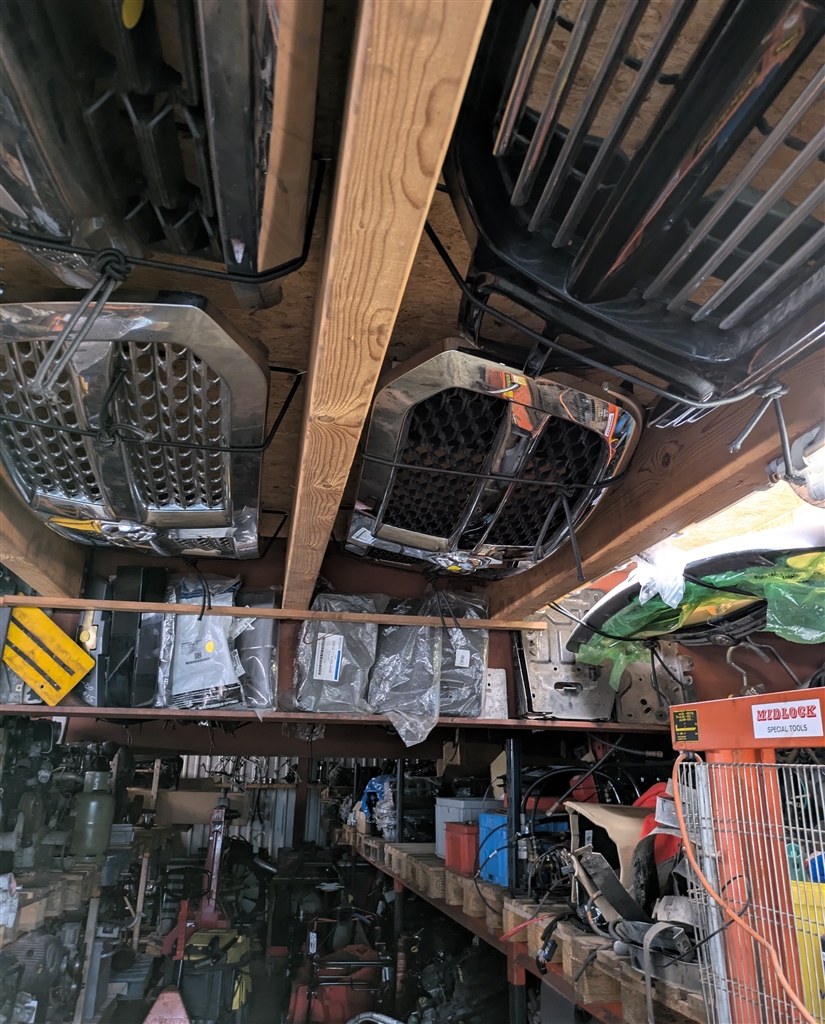 Een gebruikte originele chroom grille van een Dodge Ram pickup 2013-2018.