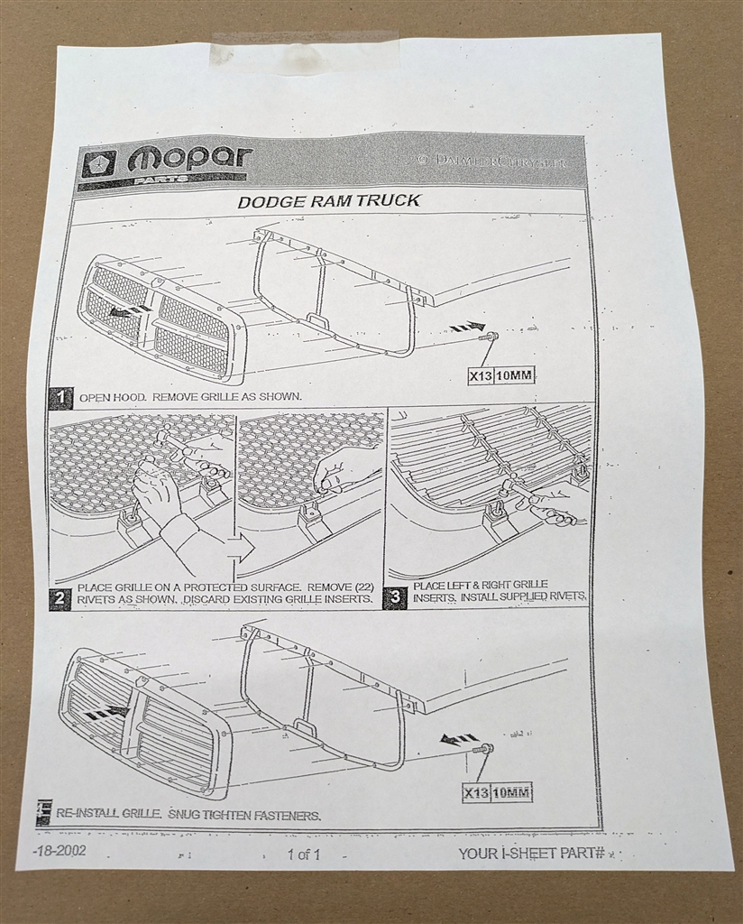 Een originele set grille inserts voor een Dodge Ram pickup 2002-2005.