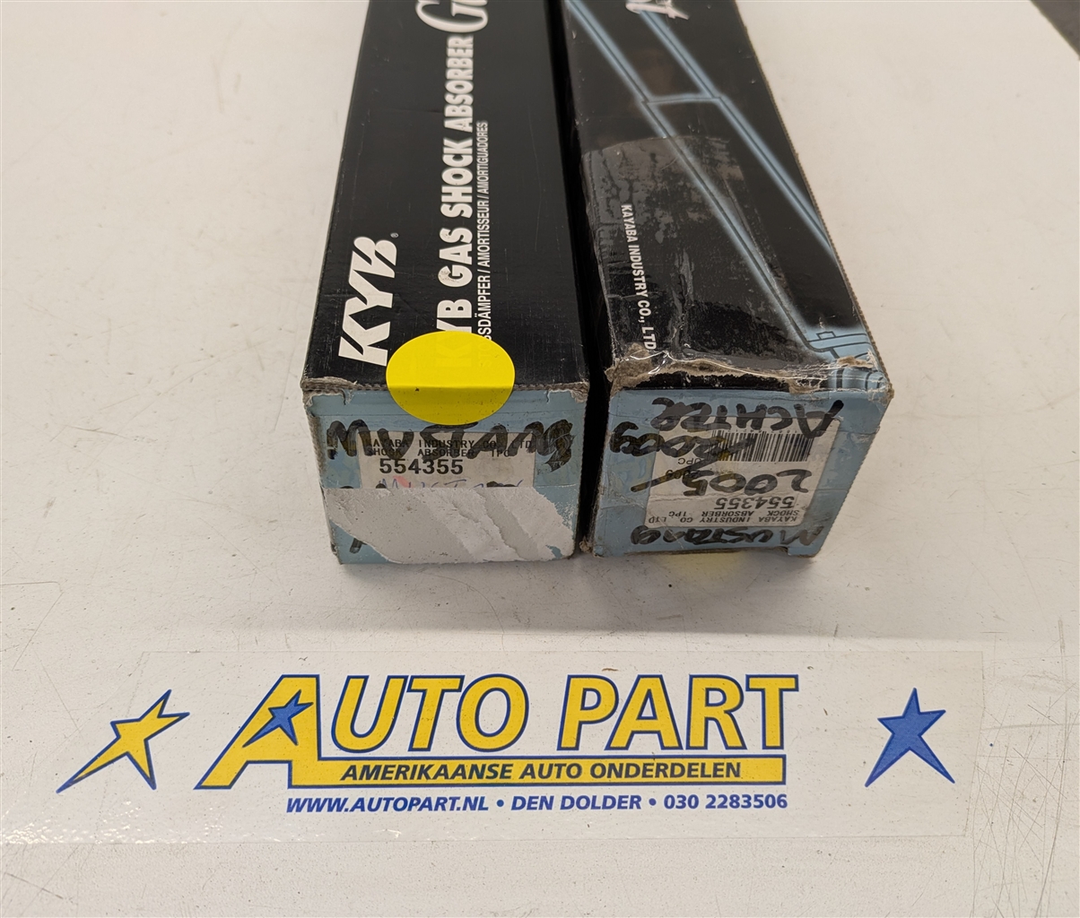 Een nieuwe set KYB achter schokbrekers voor een Ford Mustang 2005-2014.