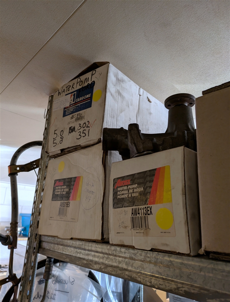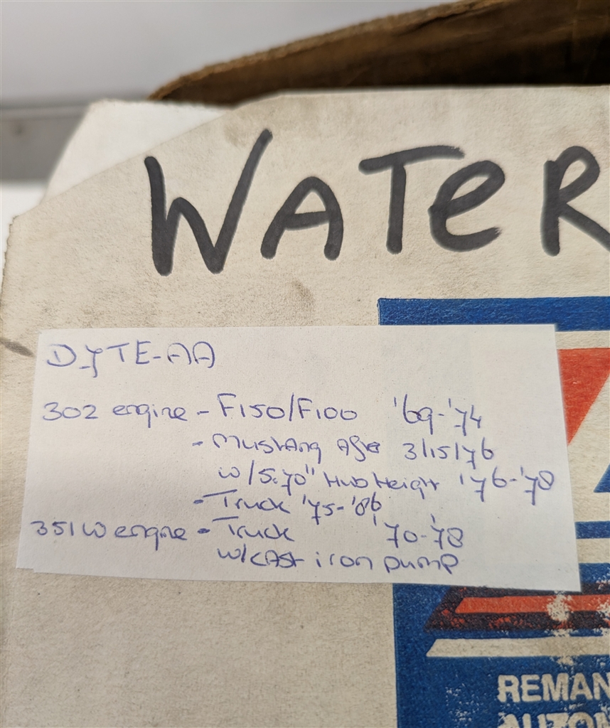 Een gereviseerde Cardone waterpomp voor een Ford F100/F150 302 1969-1987.