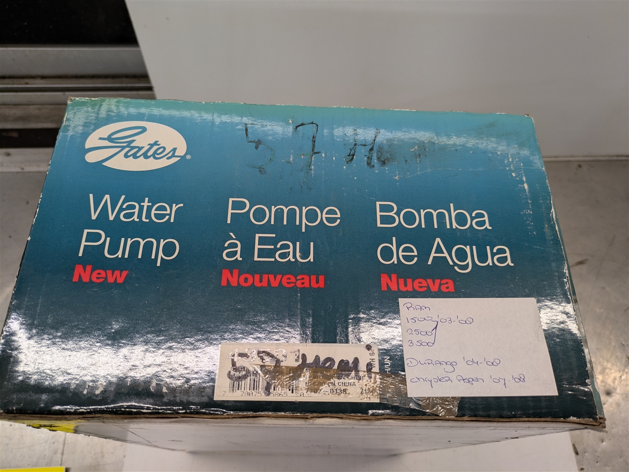 Een nieuwe aftermarket (Gates) waterpomp voor een Dodge Ram 5.7L 2003-2008.