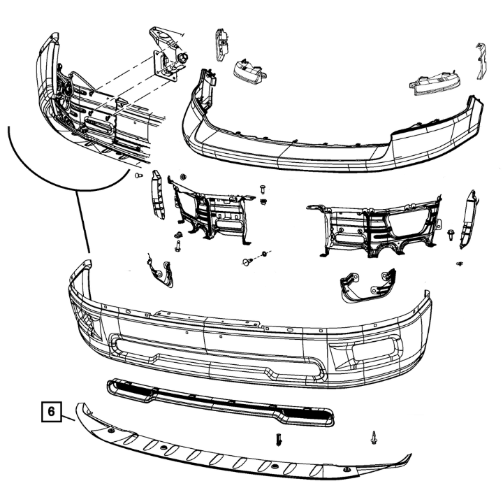 DODGE 1500 PICKUP 18 steel bumper, w/o park assist; painted, w/fog lamps, (painted upper)